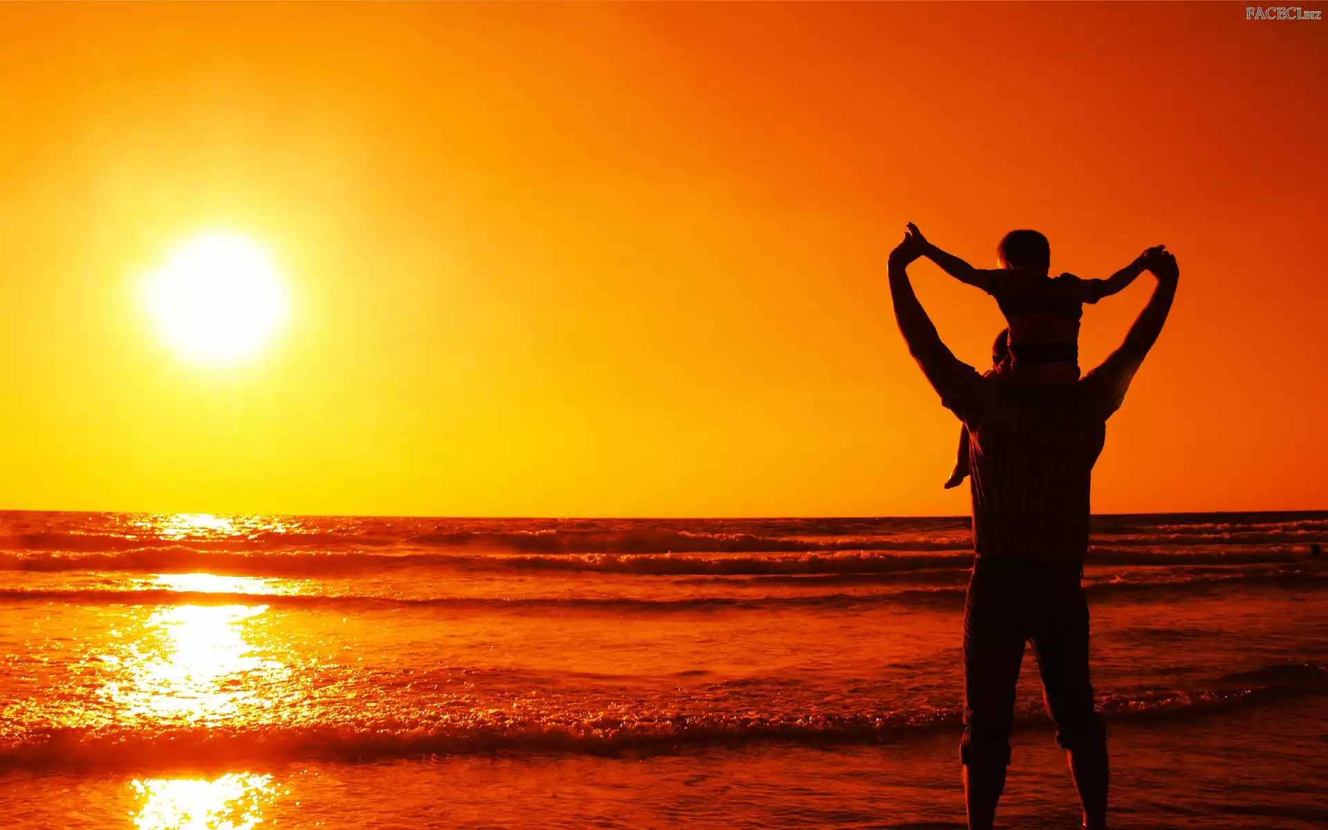 Synem, Ojciec, Słońce, Fale, Z, Morze - faceci.biz